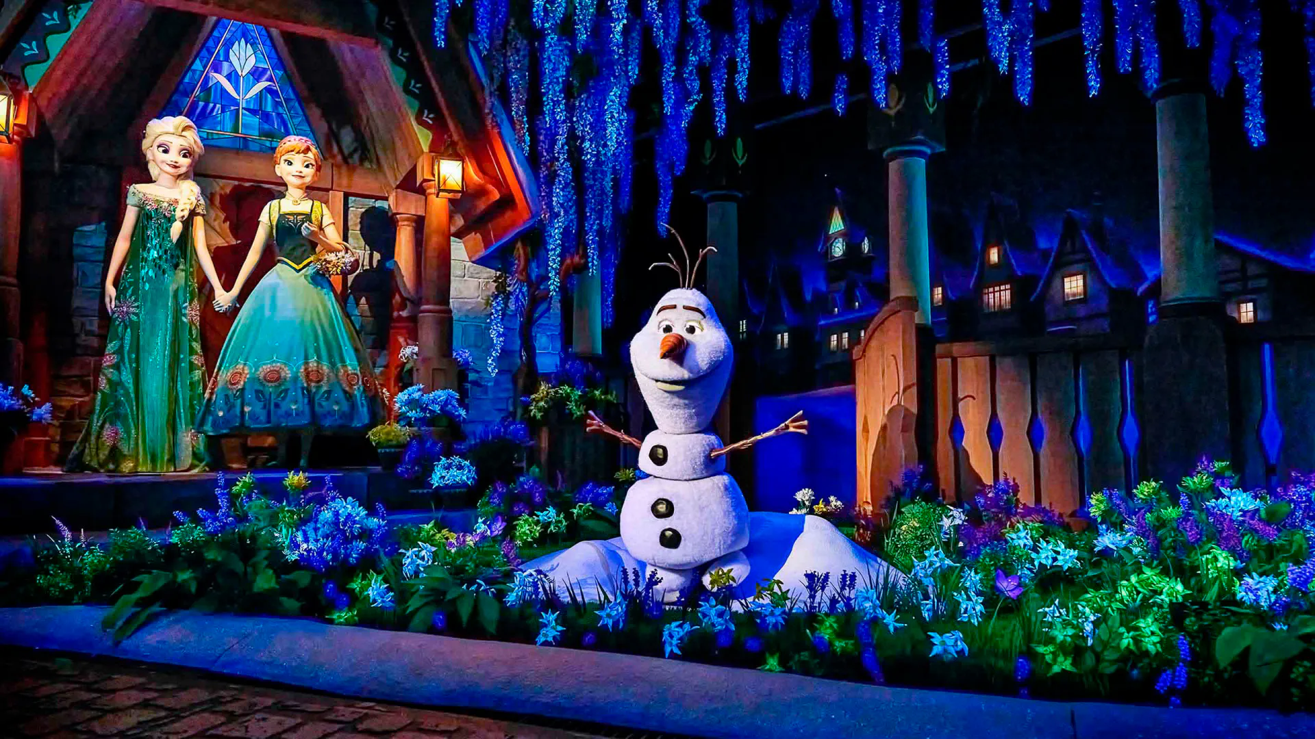World of Frozen es la inmersión llevada al extremo psicótico (en el buen sentido). Disney ha recreado la arquitectura, la atmósfera e incluso la geografía de Arendelle post-primera película.